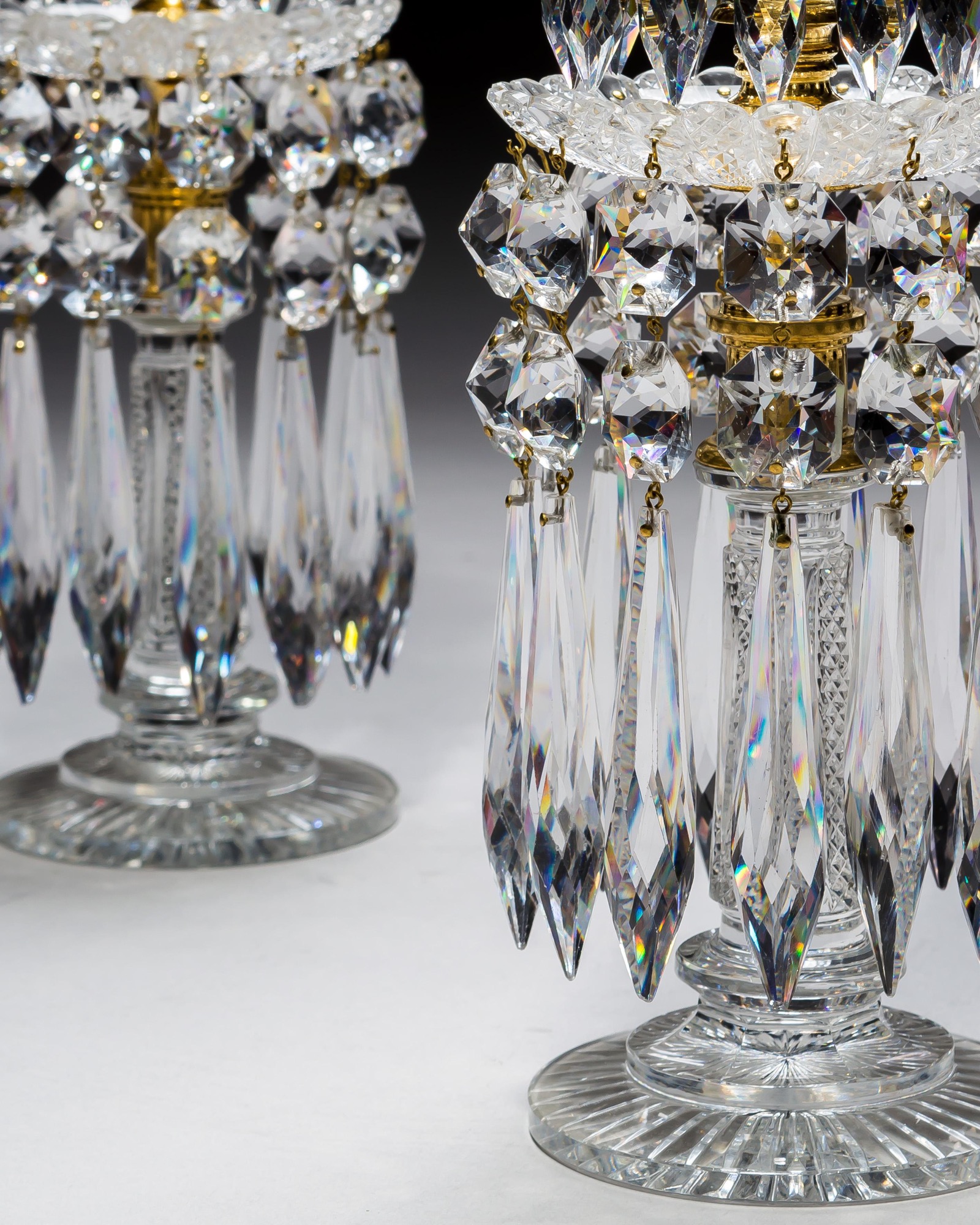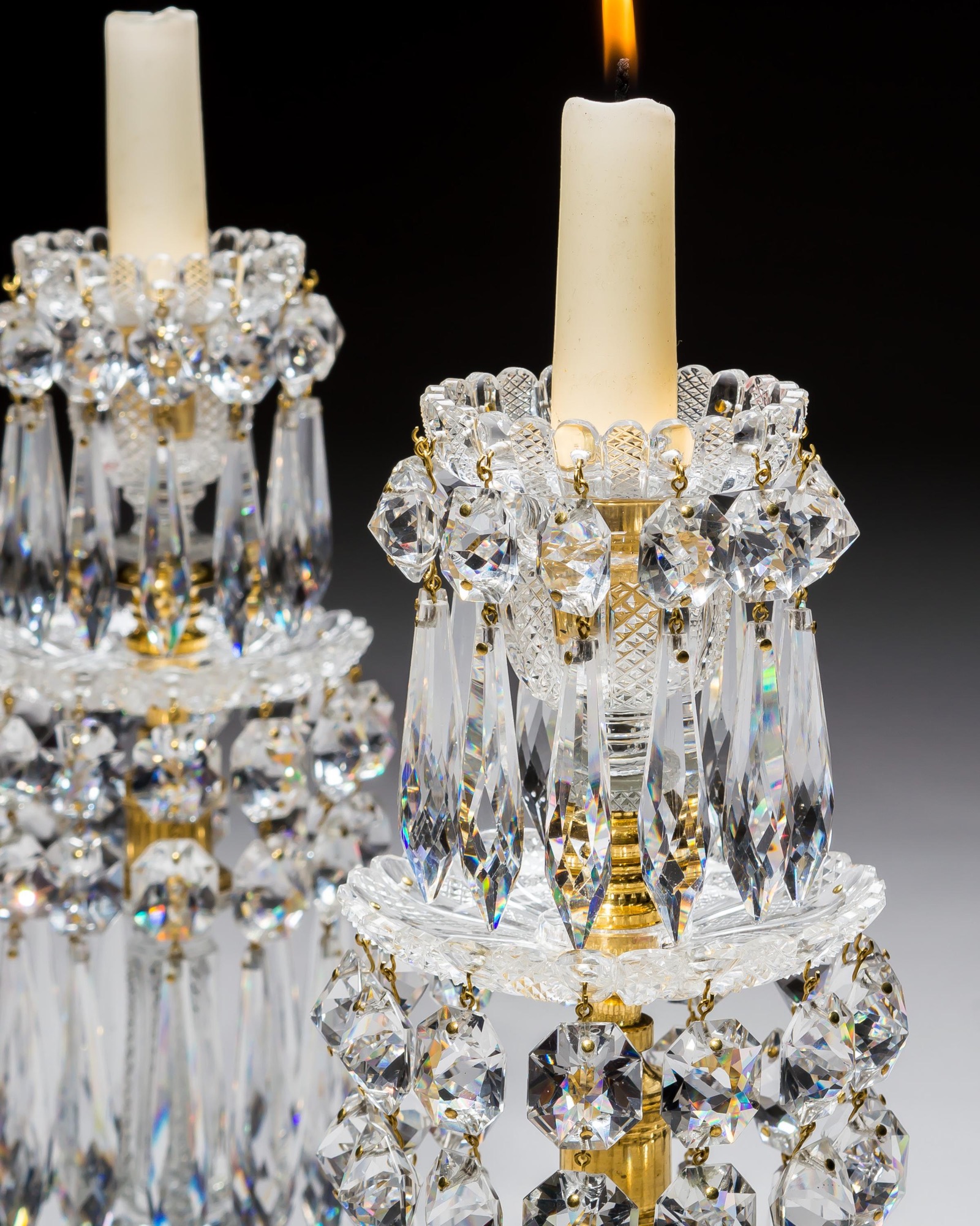 A FINE PAIR OF ORMOLU MOUNTED REGENCY LUSTRES