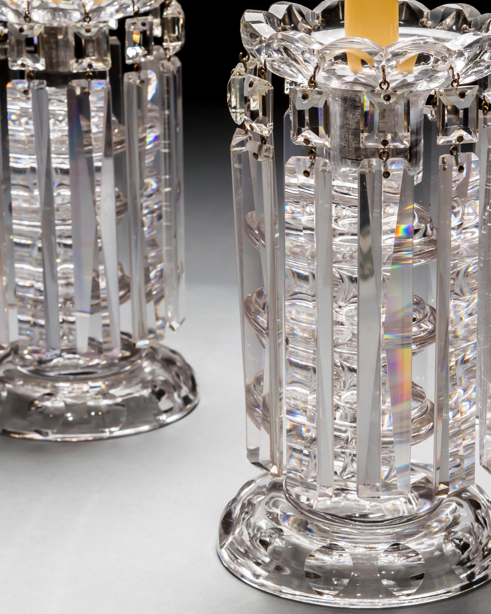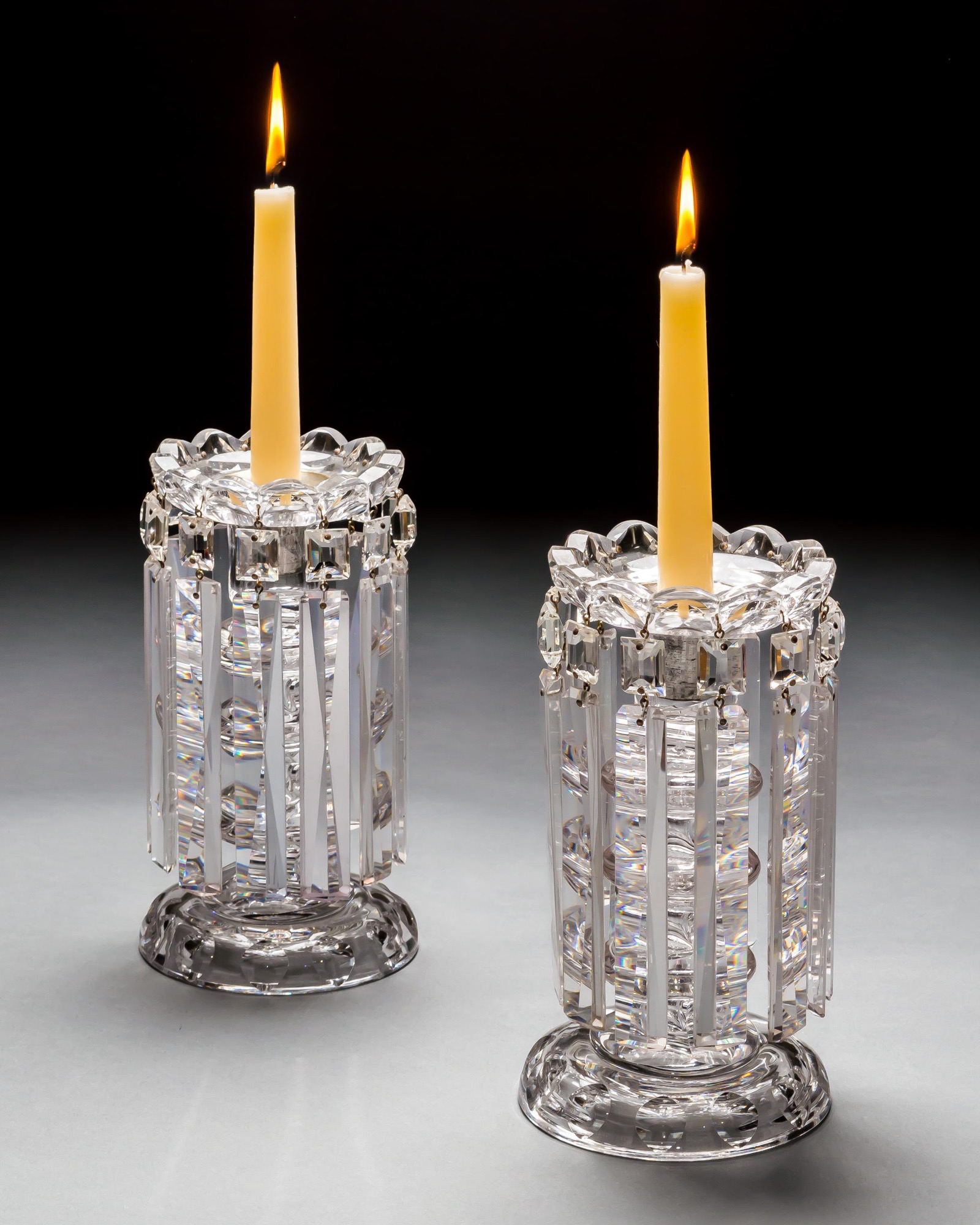 A PAIR OF FINE DIAMOND CUT VICTORIAN LUSTRES