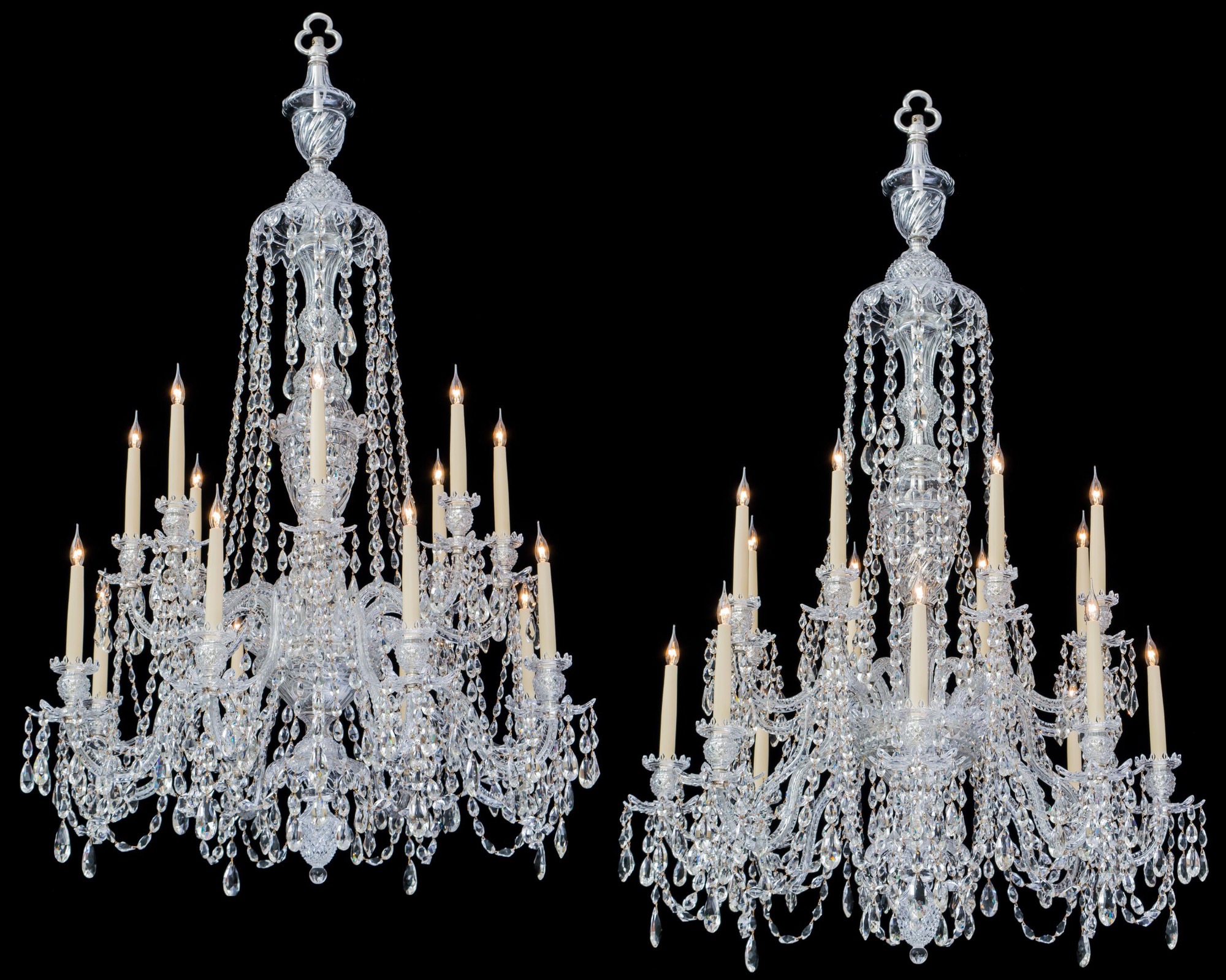 A PAIR OF GEORGE III STYLE CHANDELIERS BY F&C OSLER