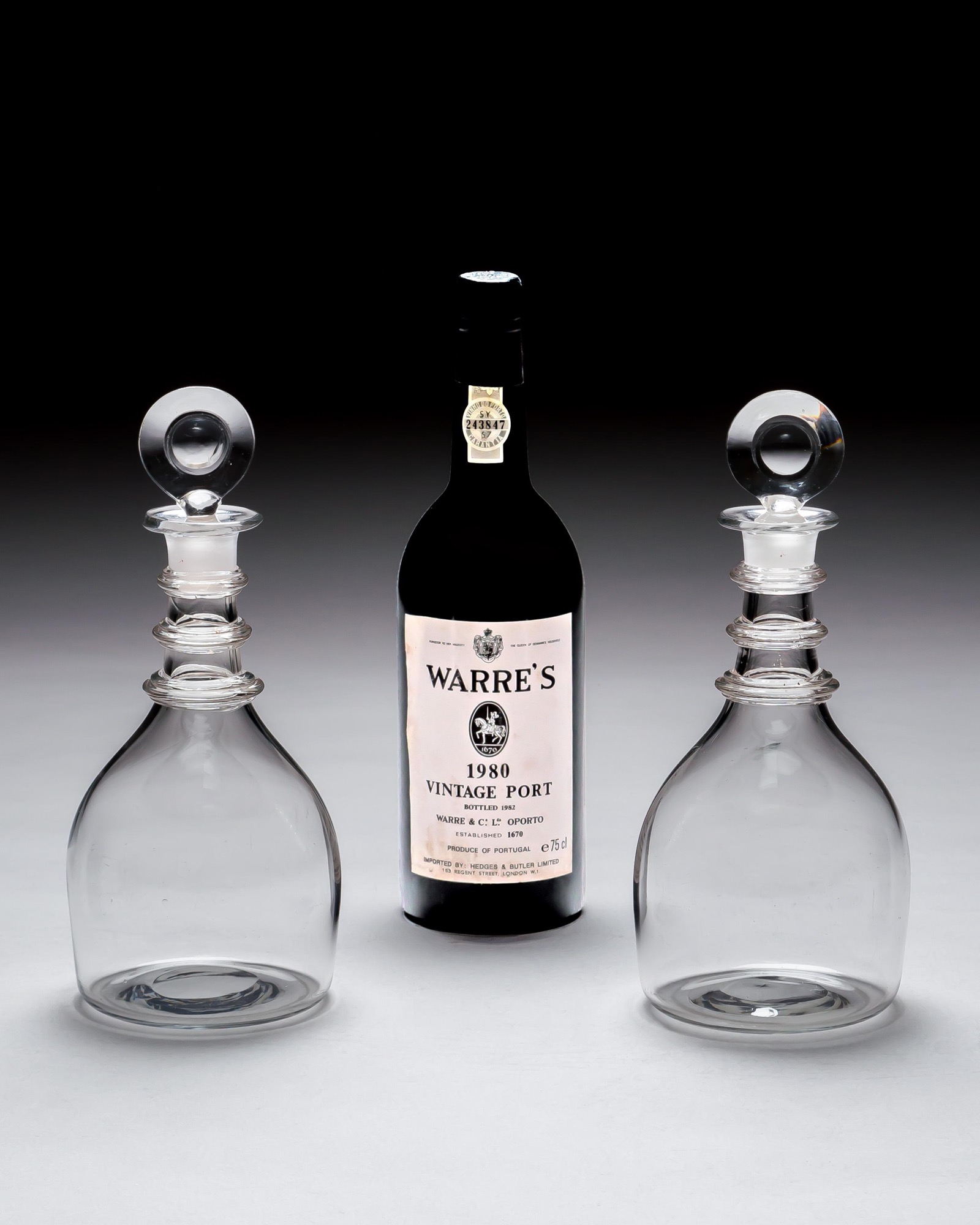ENQUIRE ABOUT A PAIR OF TRIPLE RING DECANTERS