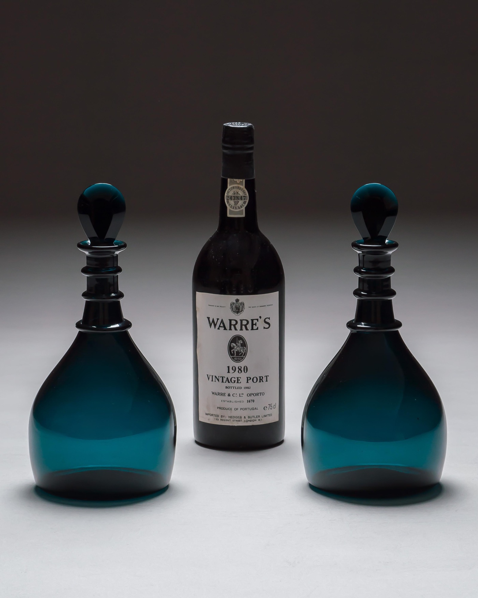 ENQUIRE ABOUT A PAIR OF TRIPLE RING GREEN DECANTERS