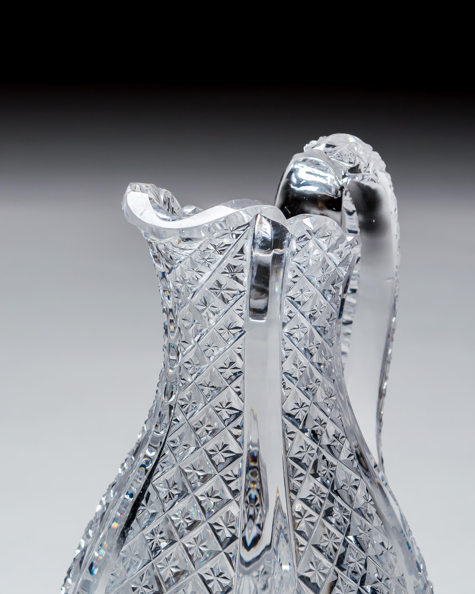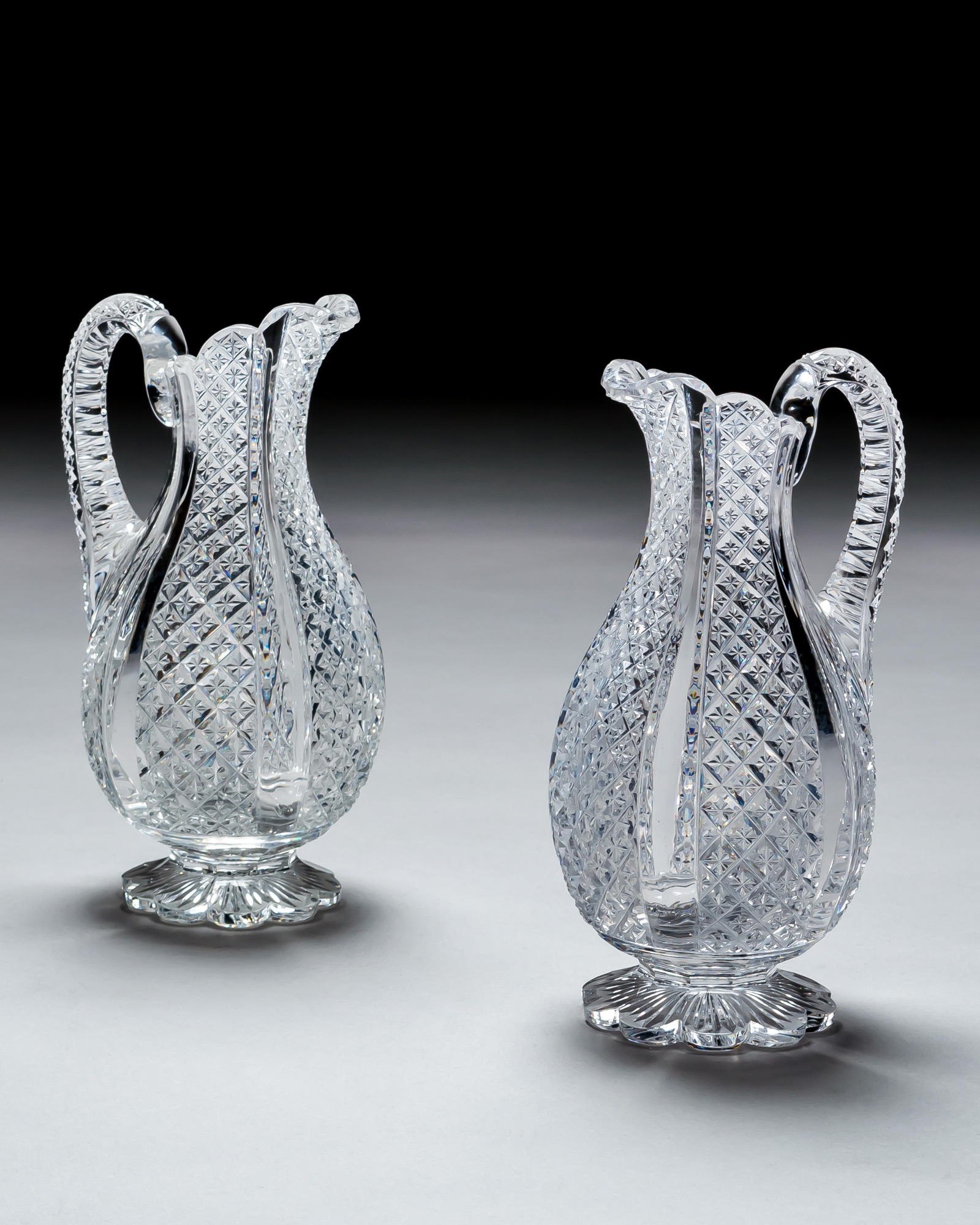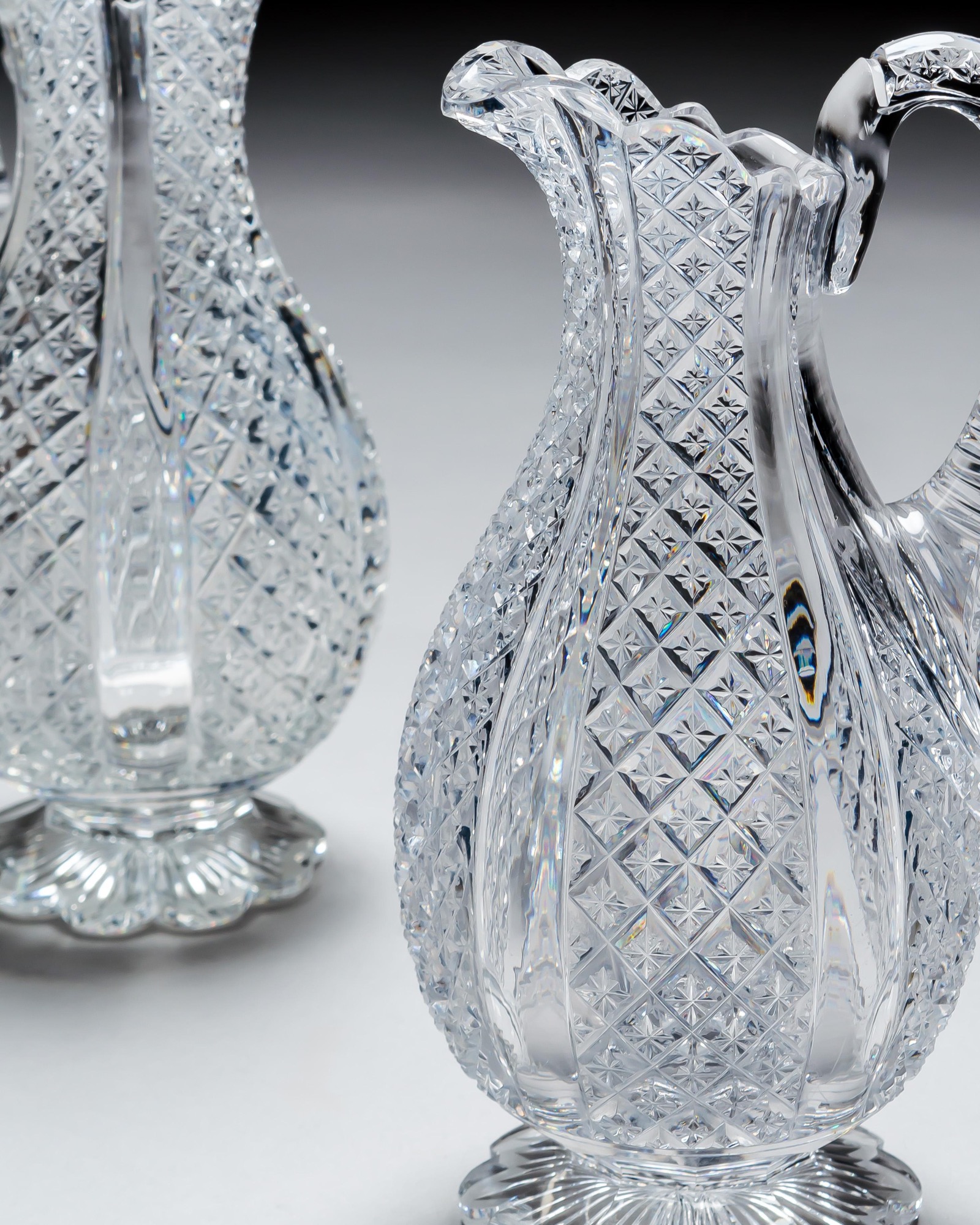 ENQUIRE ABOUT A FINELY CROSSOVER DIAMOND CUT DECANTER WITH MATCHING PAIR OF JUGS