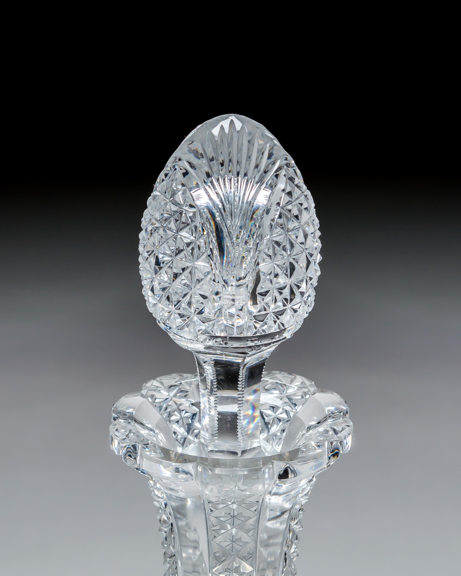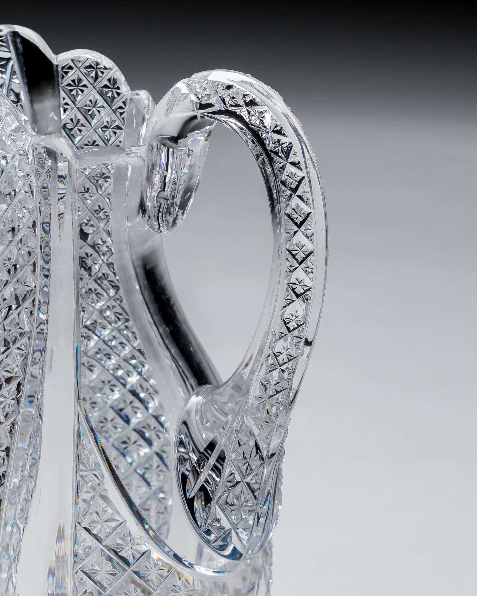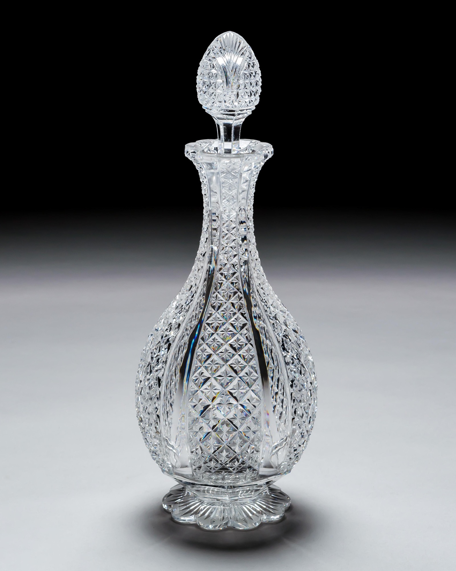 ENQUIRE ABOUT A FINELY CROSSOVER DIAMOND CUT DECANTER WITH MATCHING PAIR OF JUGS