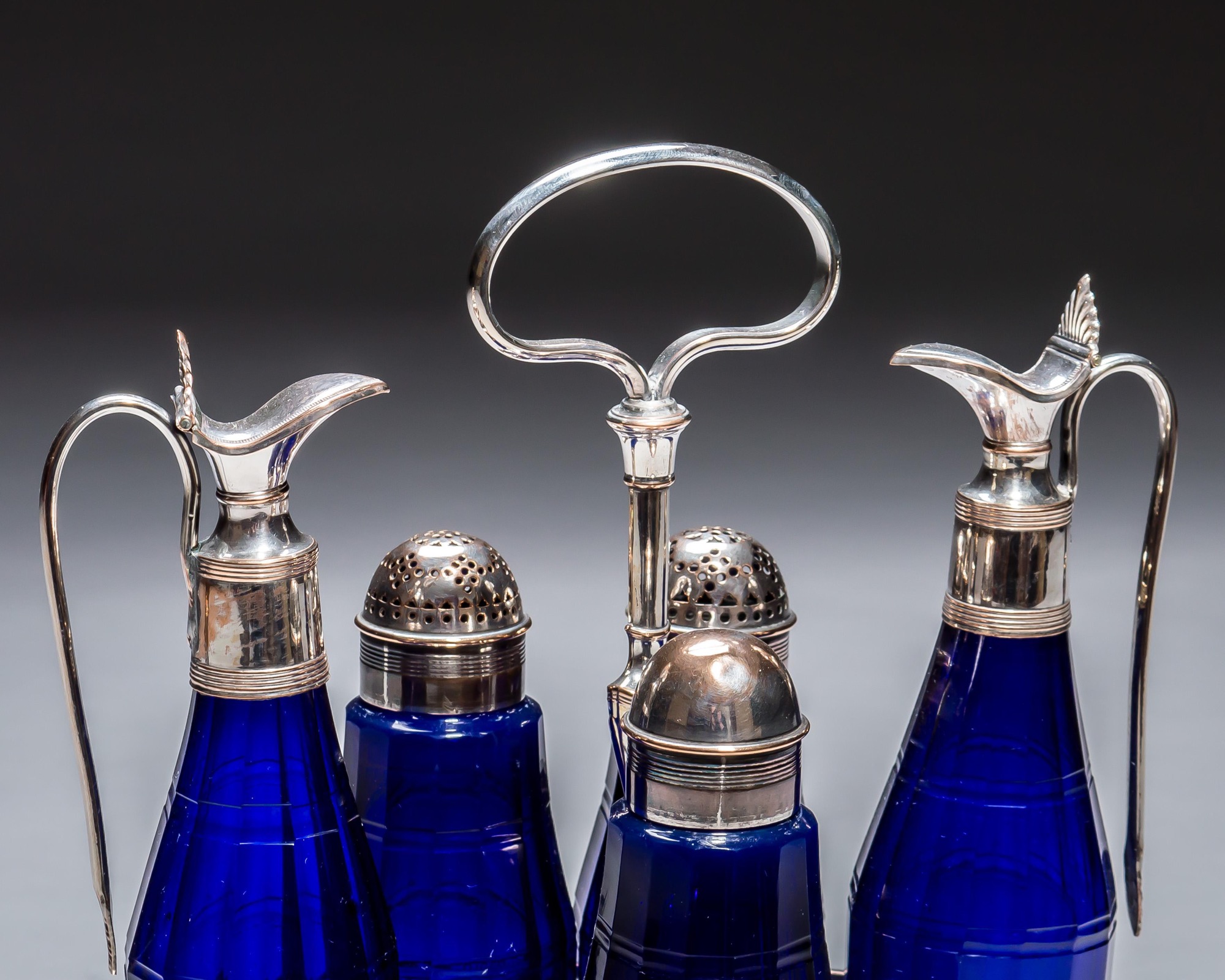 ENQUIRE ABOUT A SLIVER PLATED BLUE GLASS CRUET SET