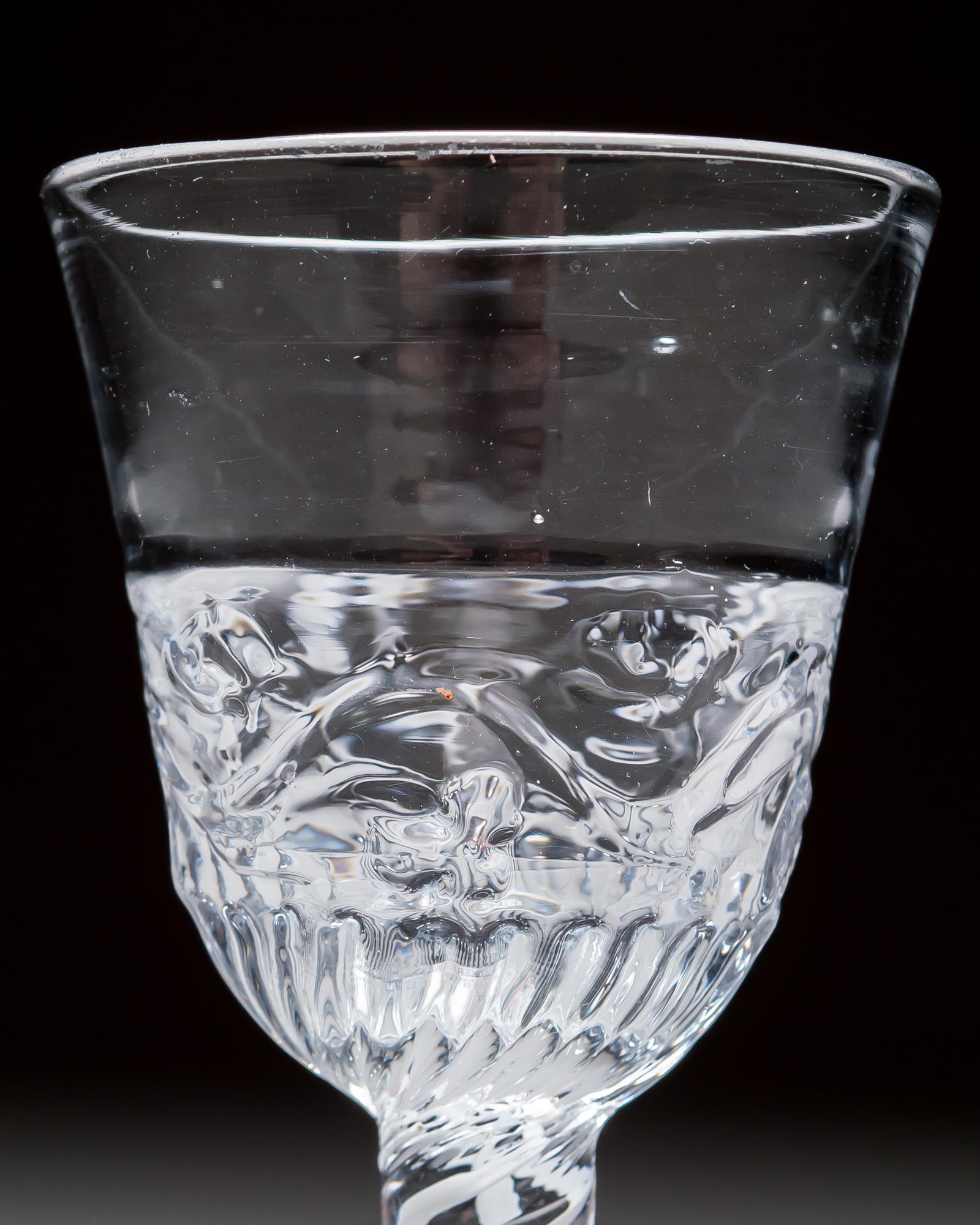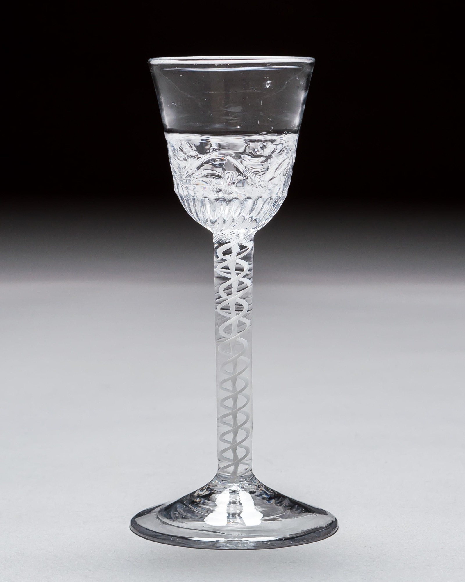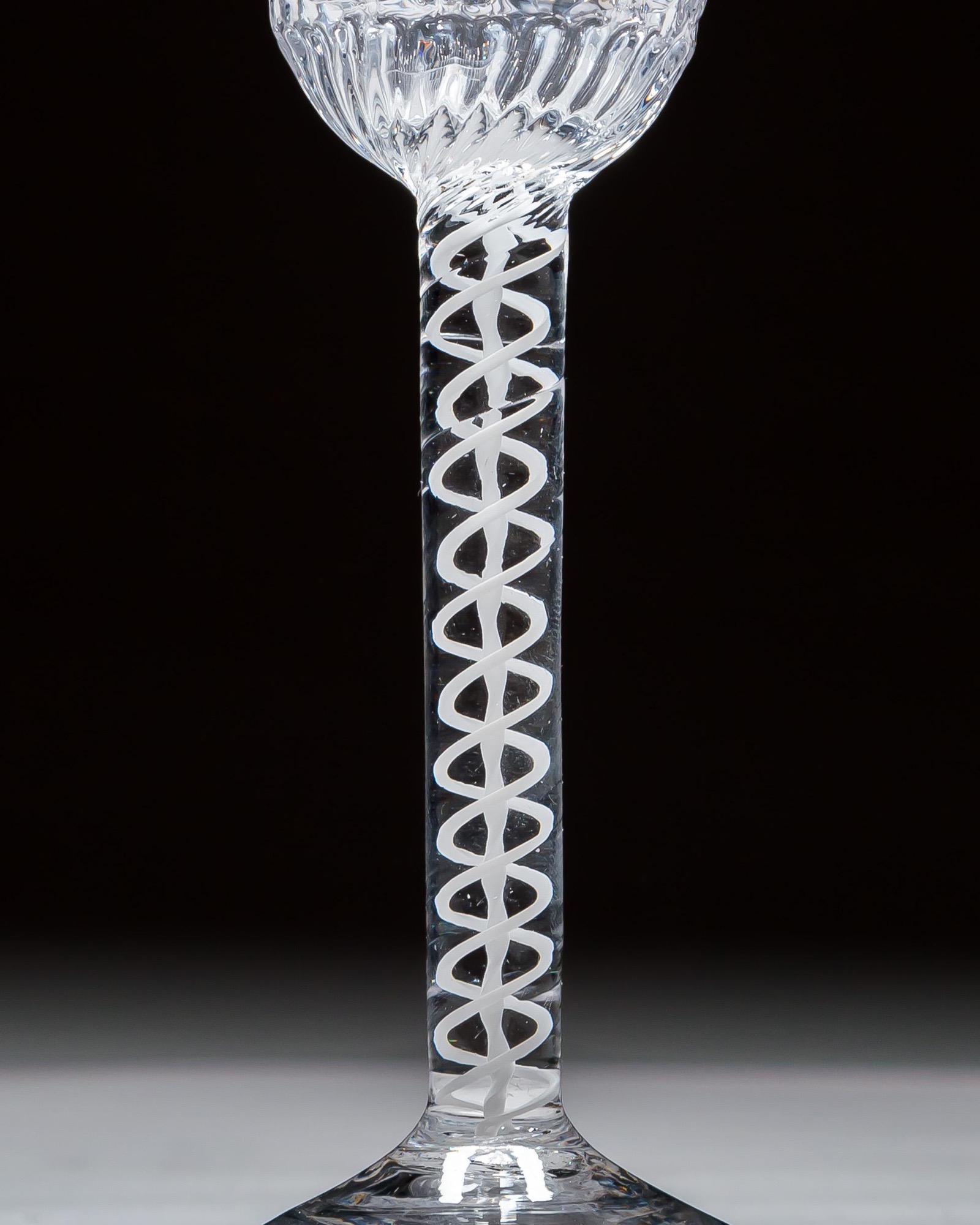 An extremely rare opaque twist, the round funnel bowl moulded on the lower part with fruiting vines.