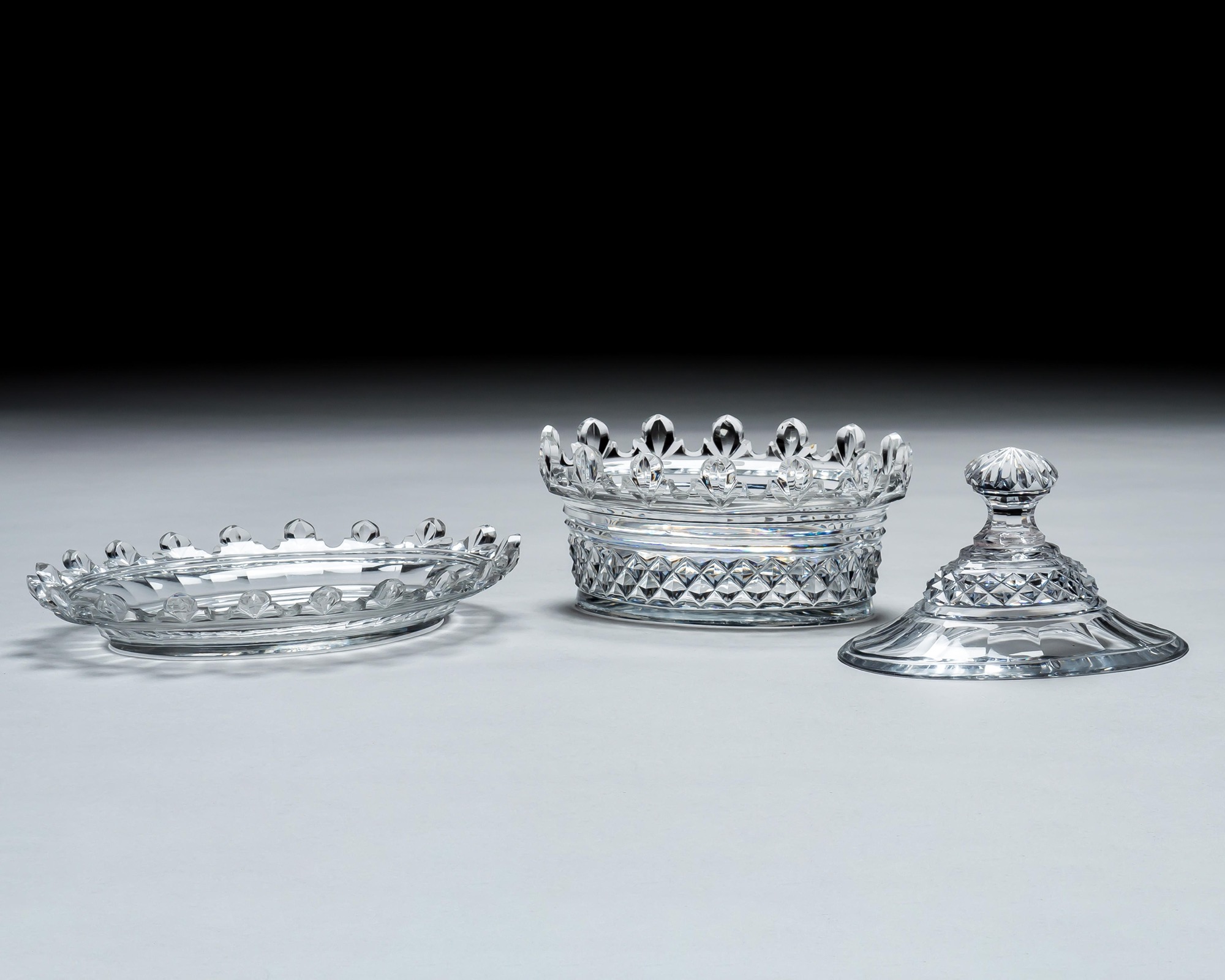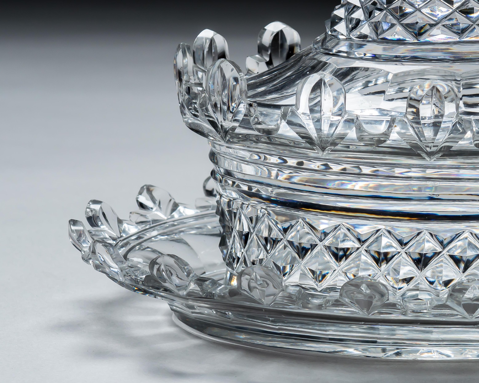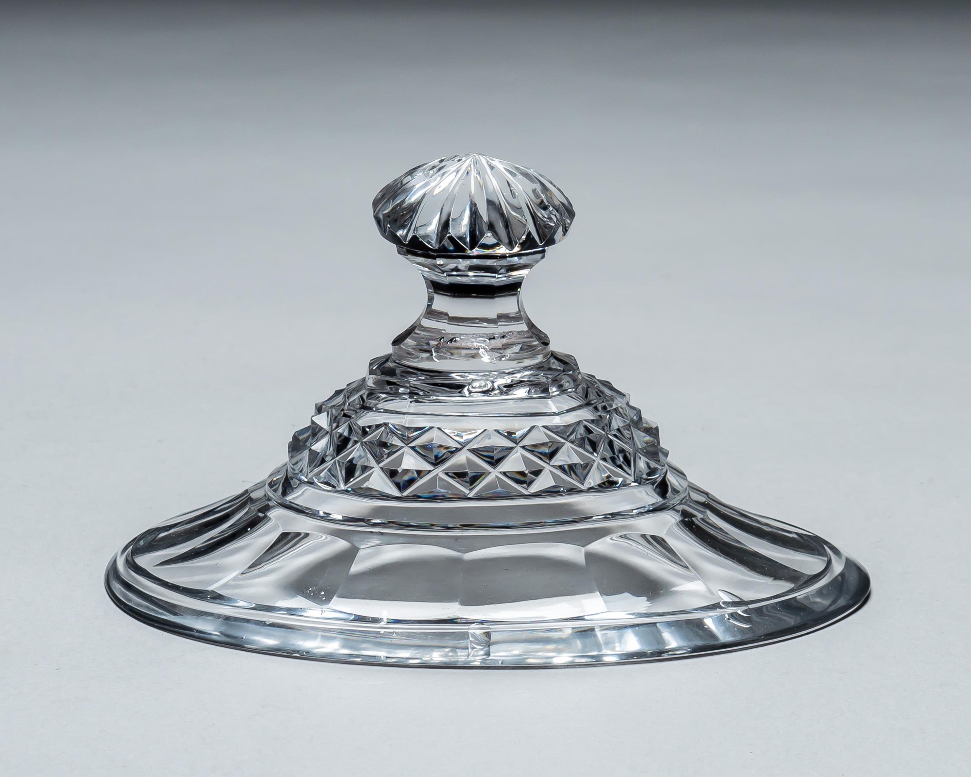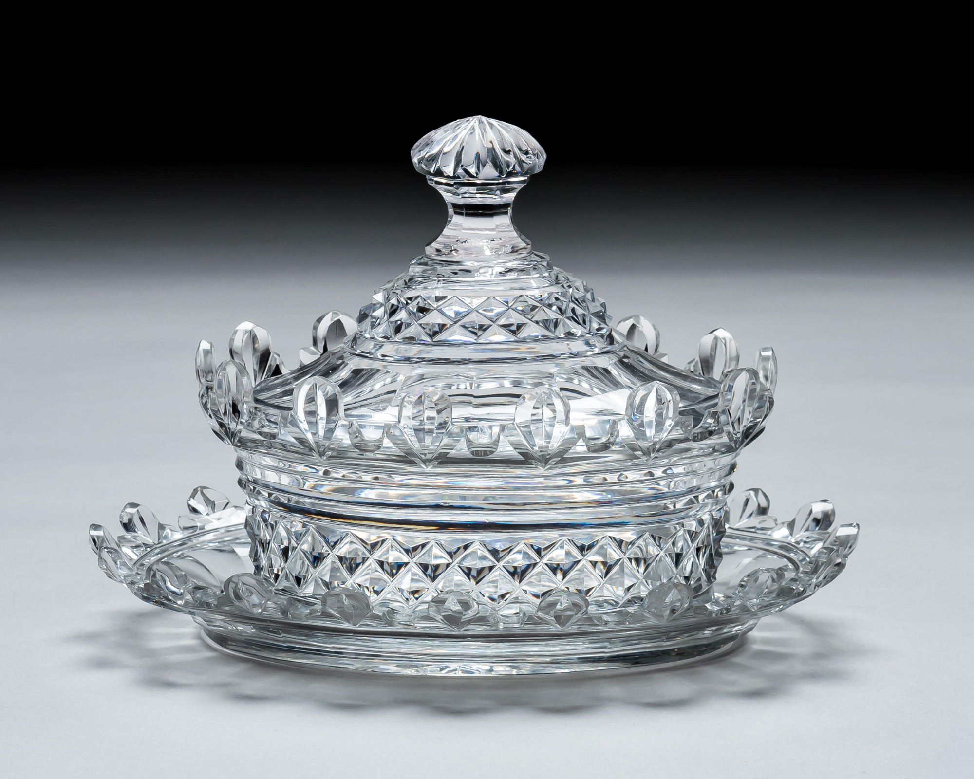 The brilliance and precision of the cutting exemplify the technical mastery and elegance of early 19th-century English glassmaking. Likely intended for serving butter, this piece would have been a centrepiece of the refined Regency table, both functional and ornamental.