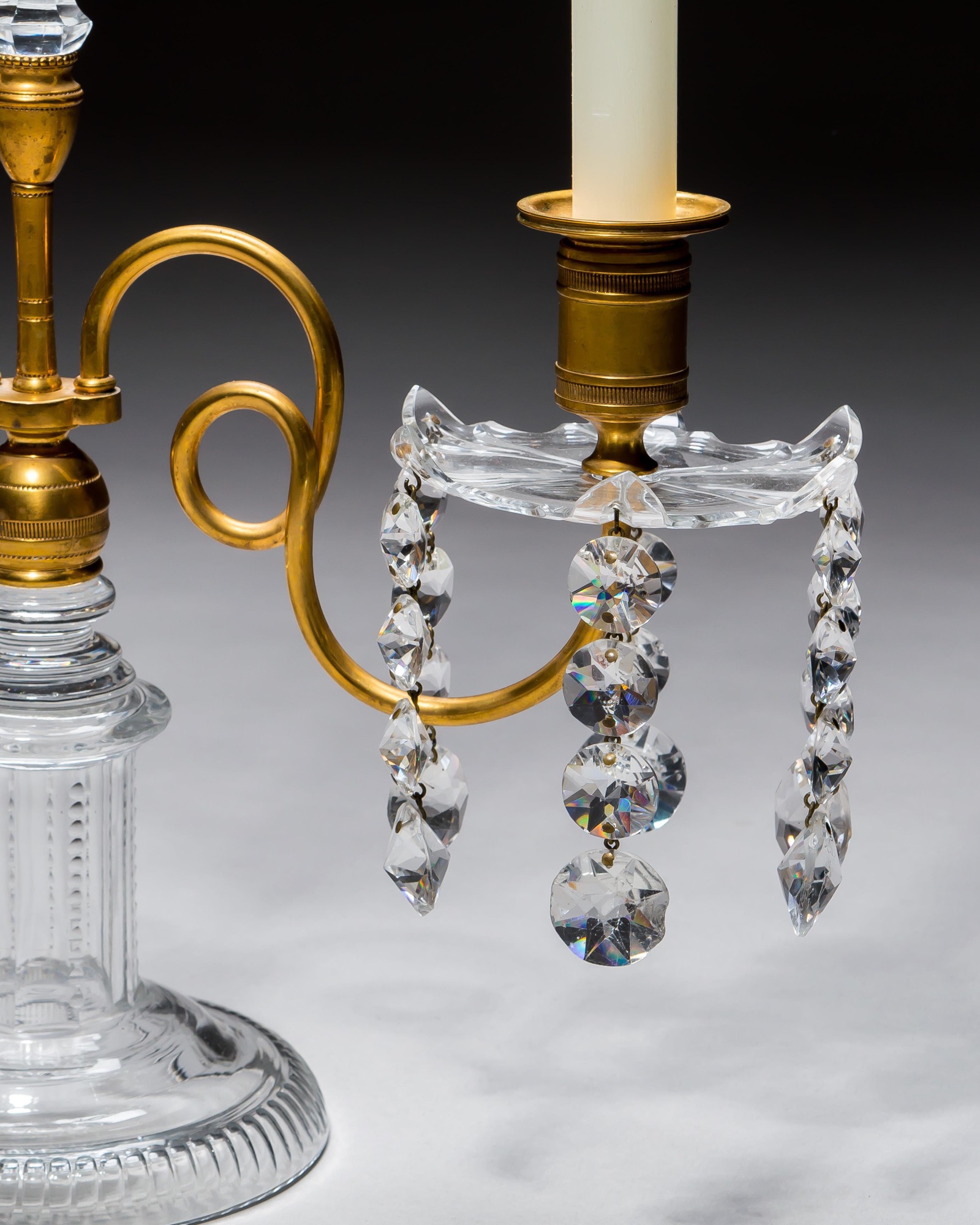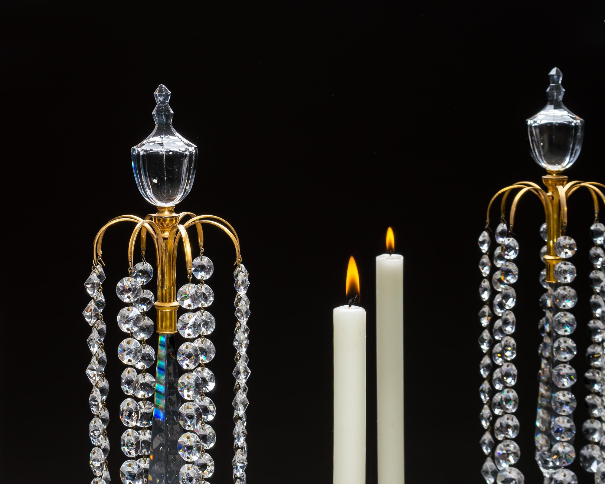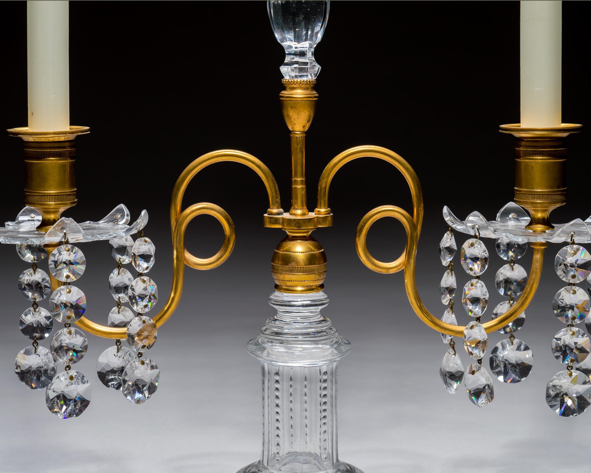 A PAIR OF ORMOLU & GLASS REGENCY CANDELABRA