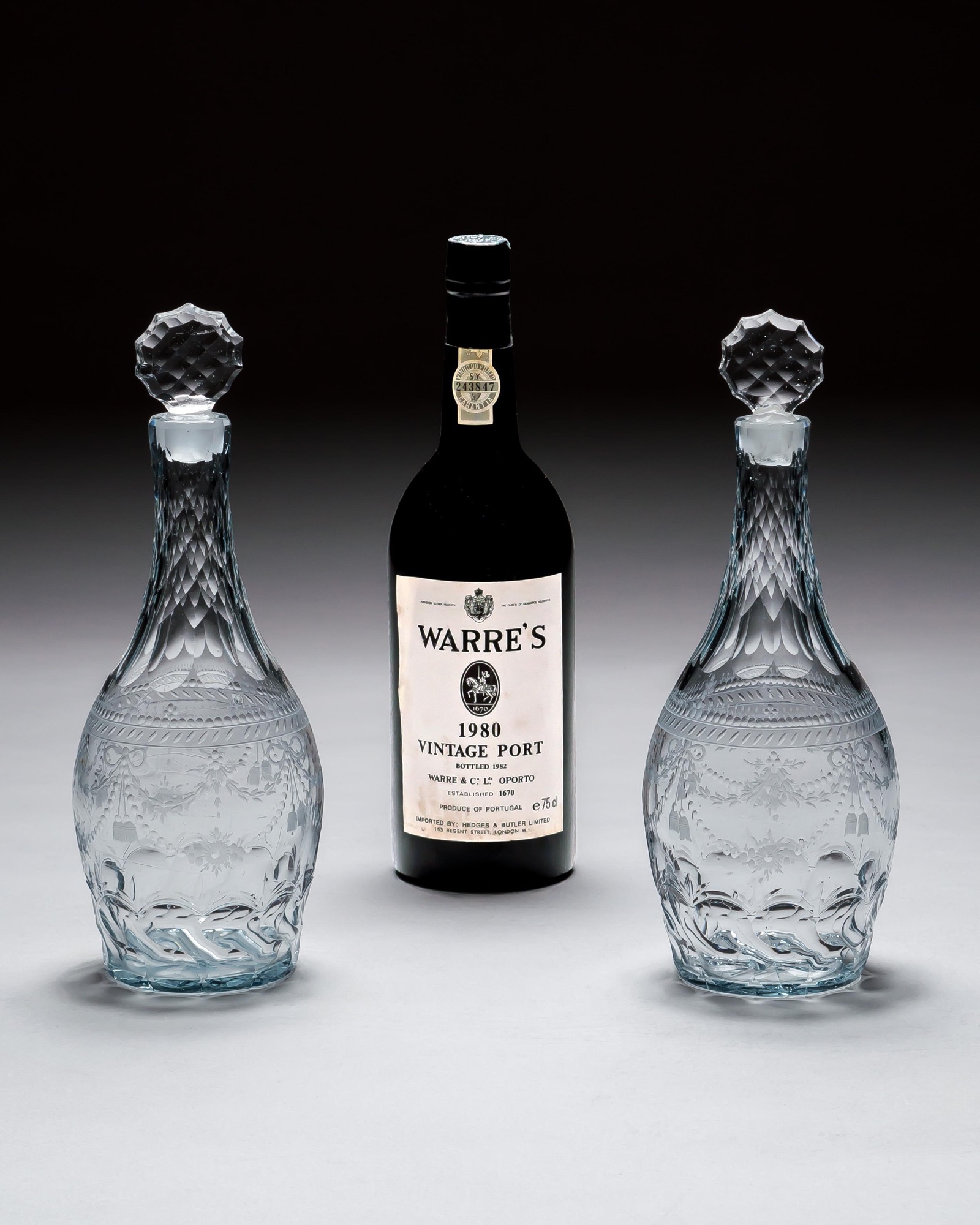 A PAIR OF ENGRAVED CONTINENTAL DECANTERS