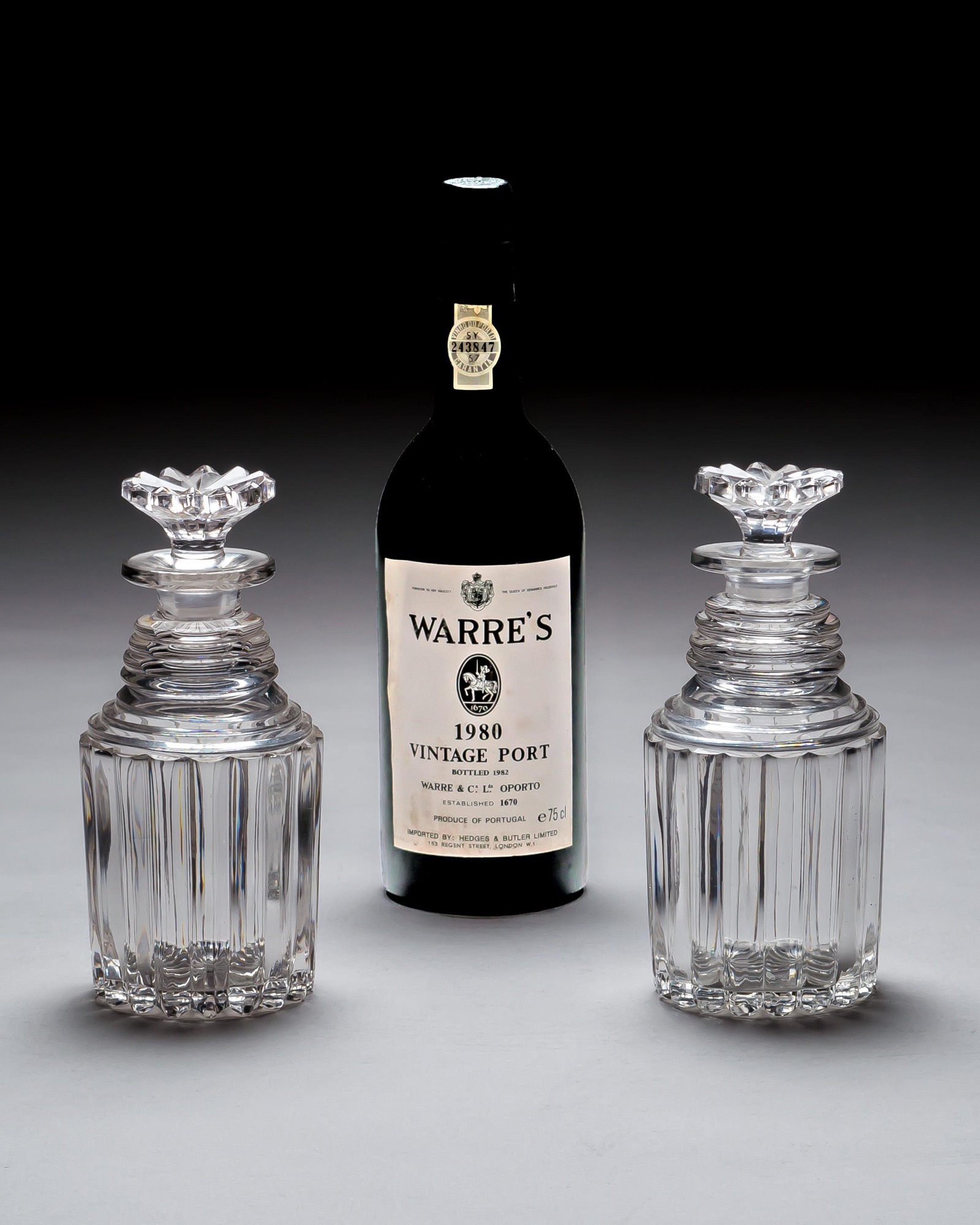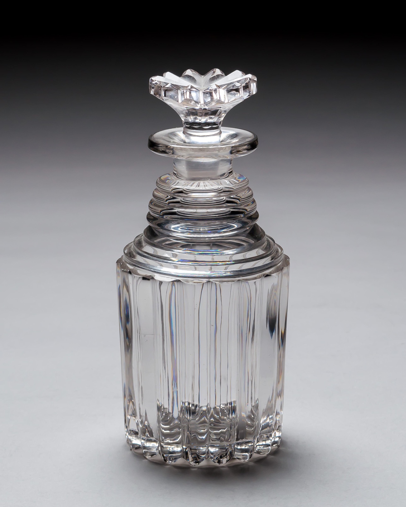 Stylish yet functional, these decanters were likely intended for formal dining or display, showcasing the understated elegance and precision typical of early 19th-century British glassmaking.