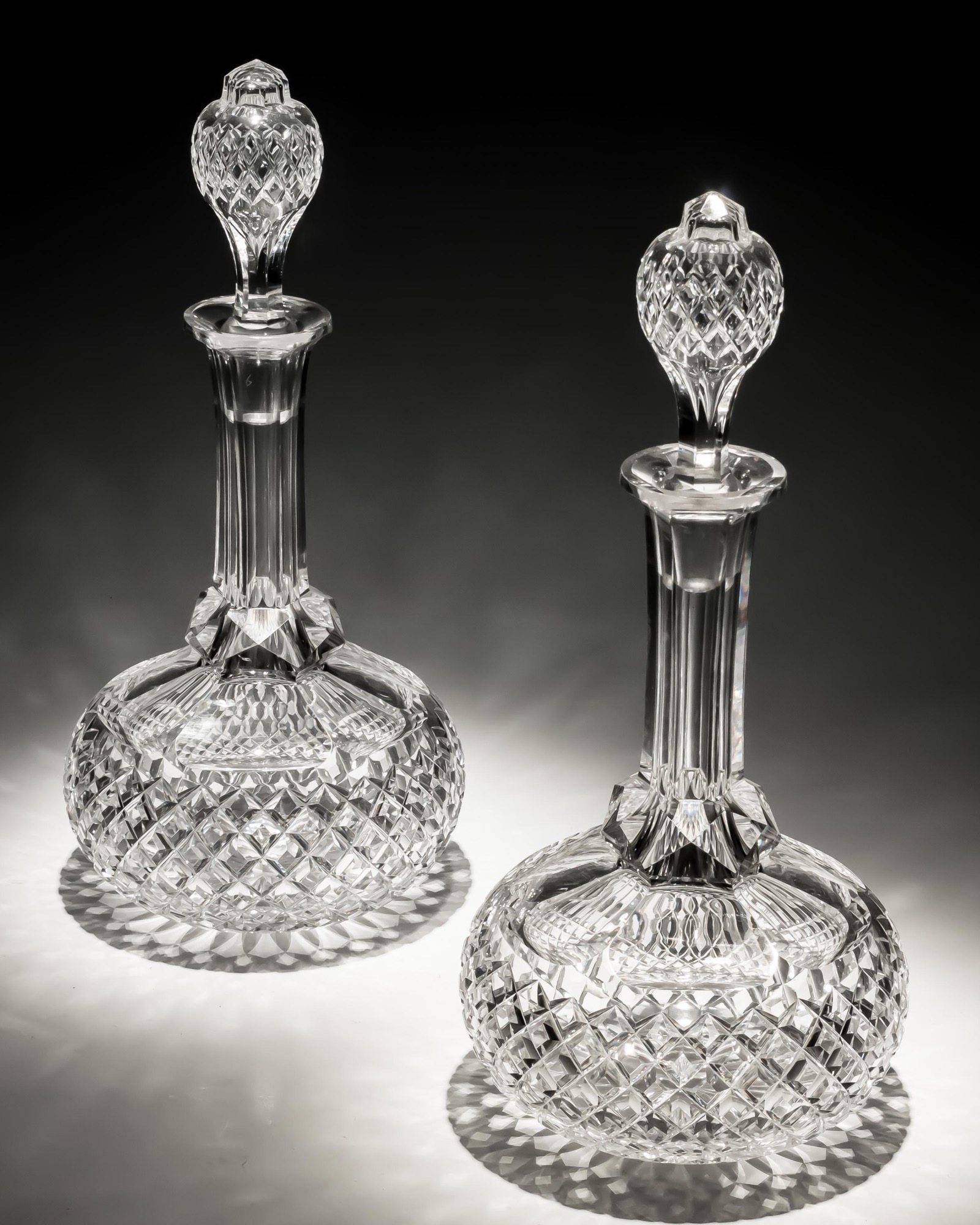 A PAIR OF DIAMOND CUT VICTORIAN DECANTERS