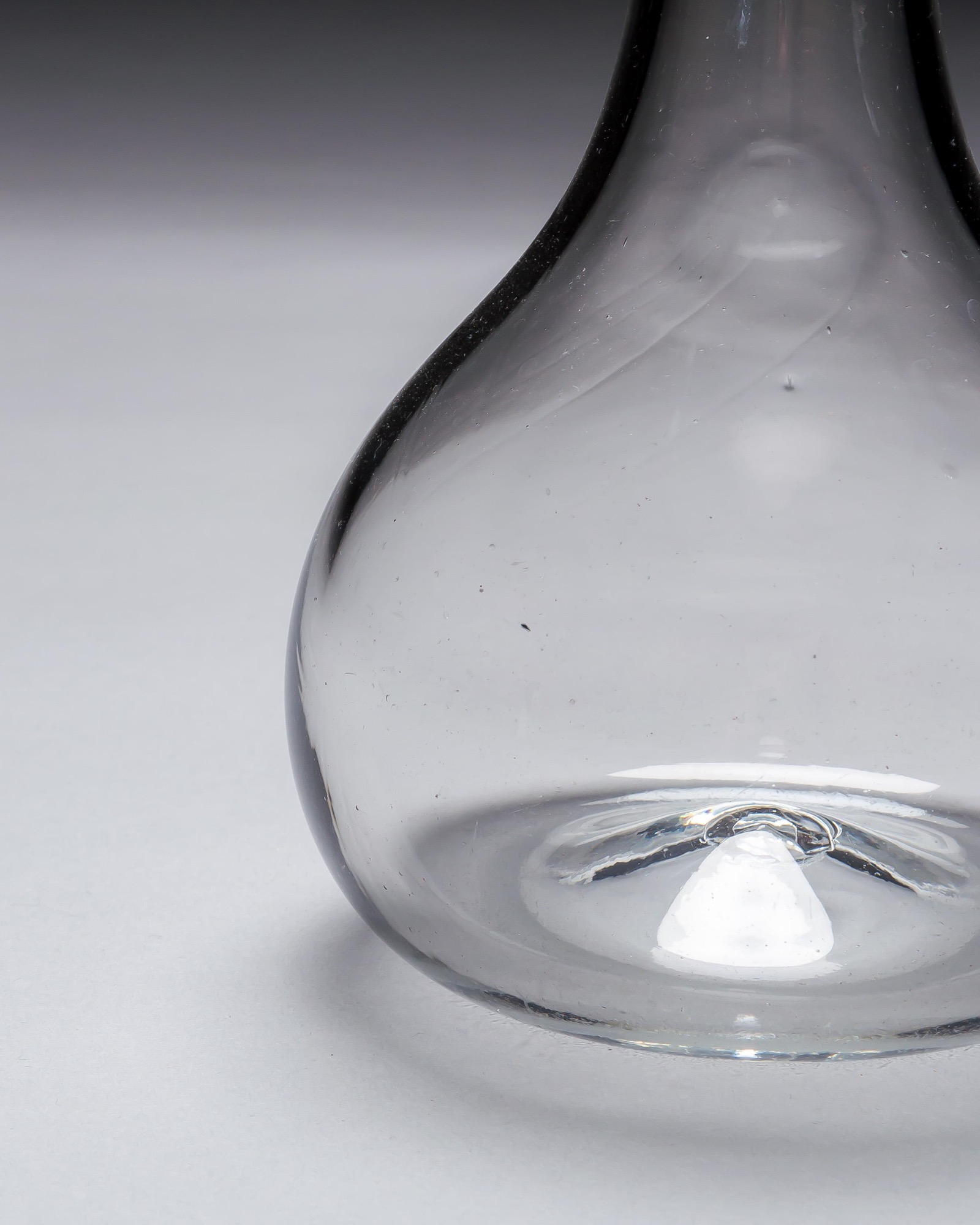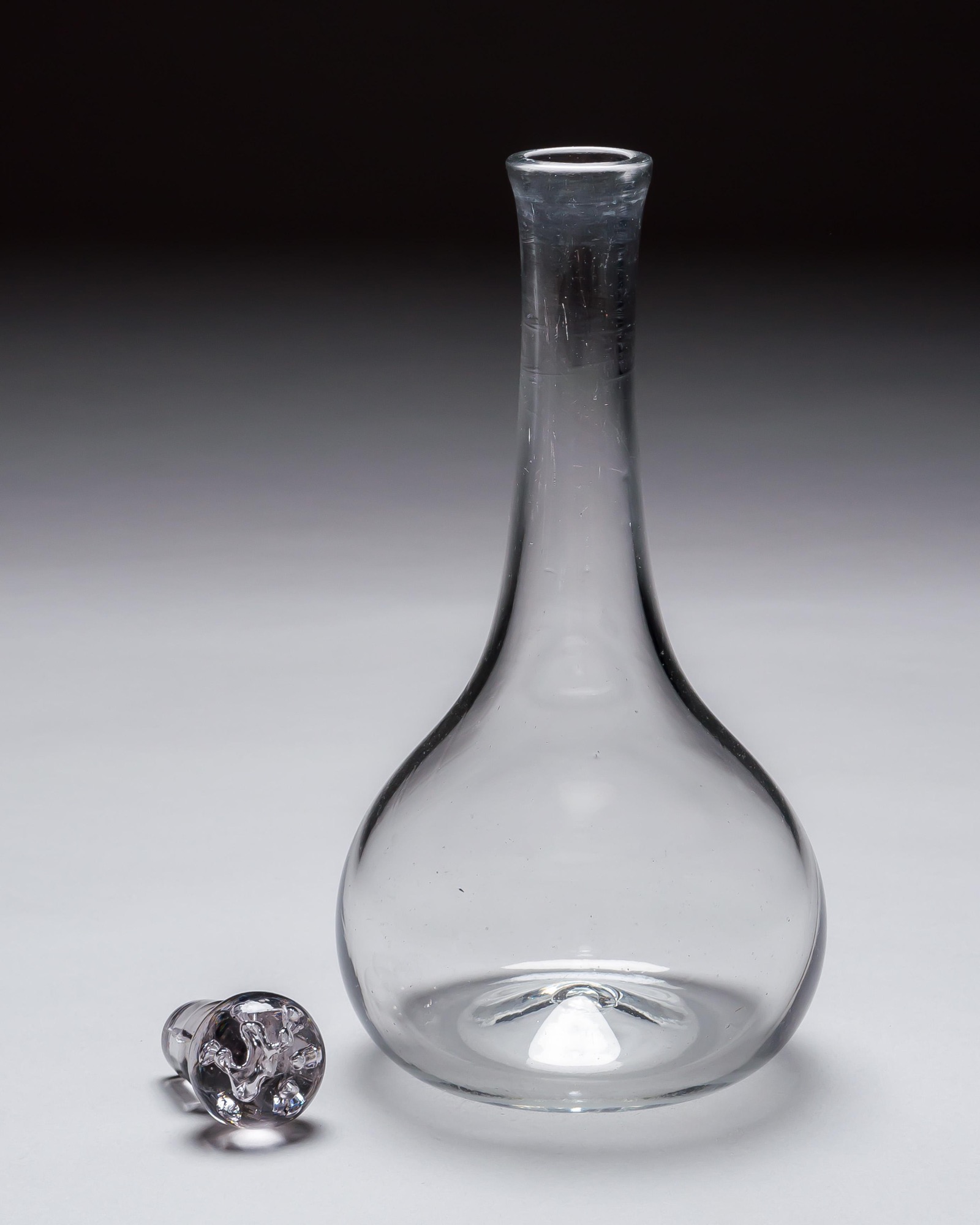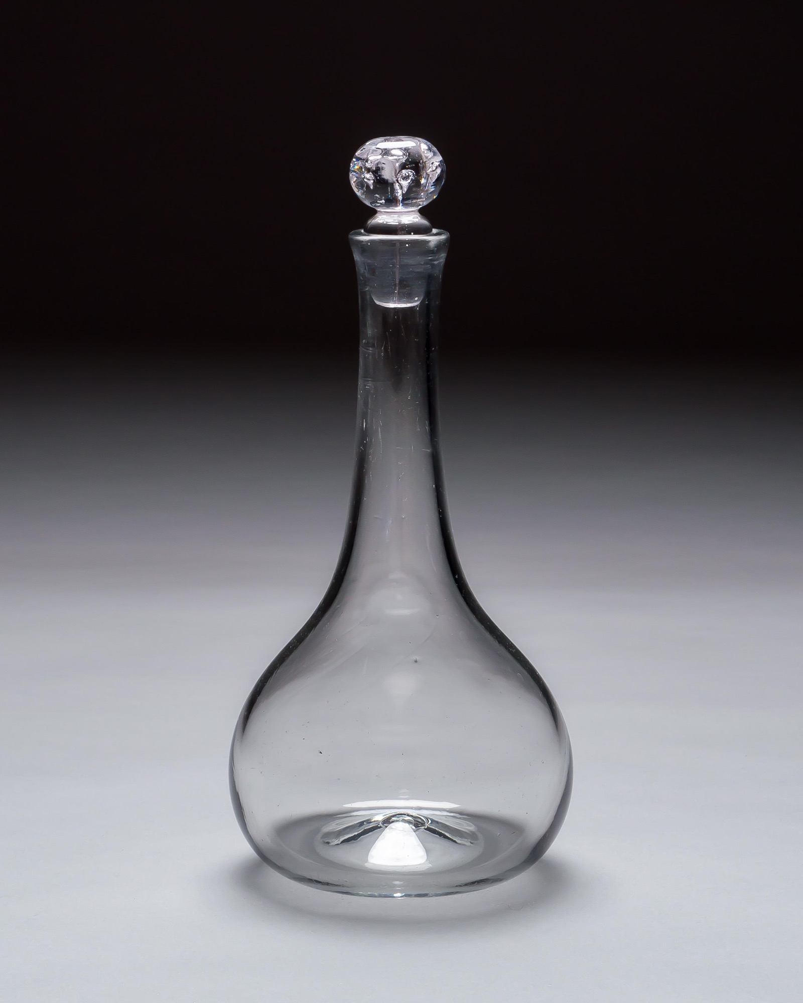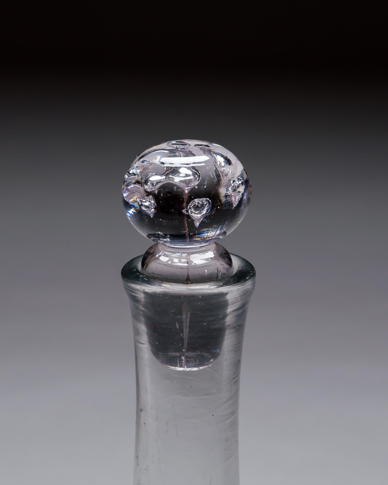 An early 18th century decanter of shaft and globe form, fitted with air bead stopper.