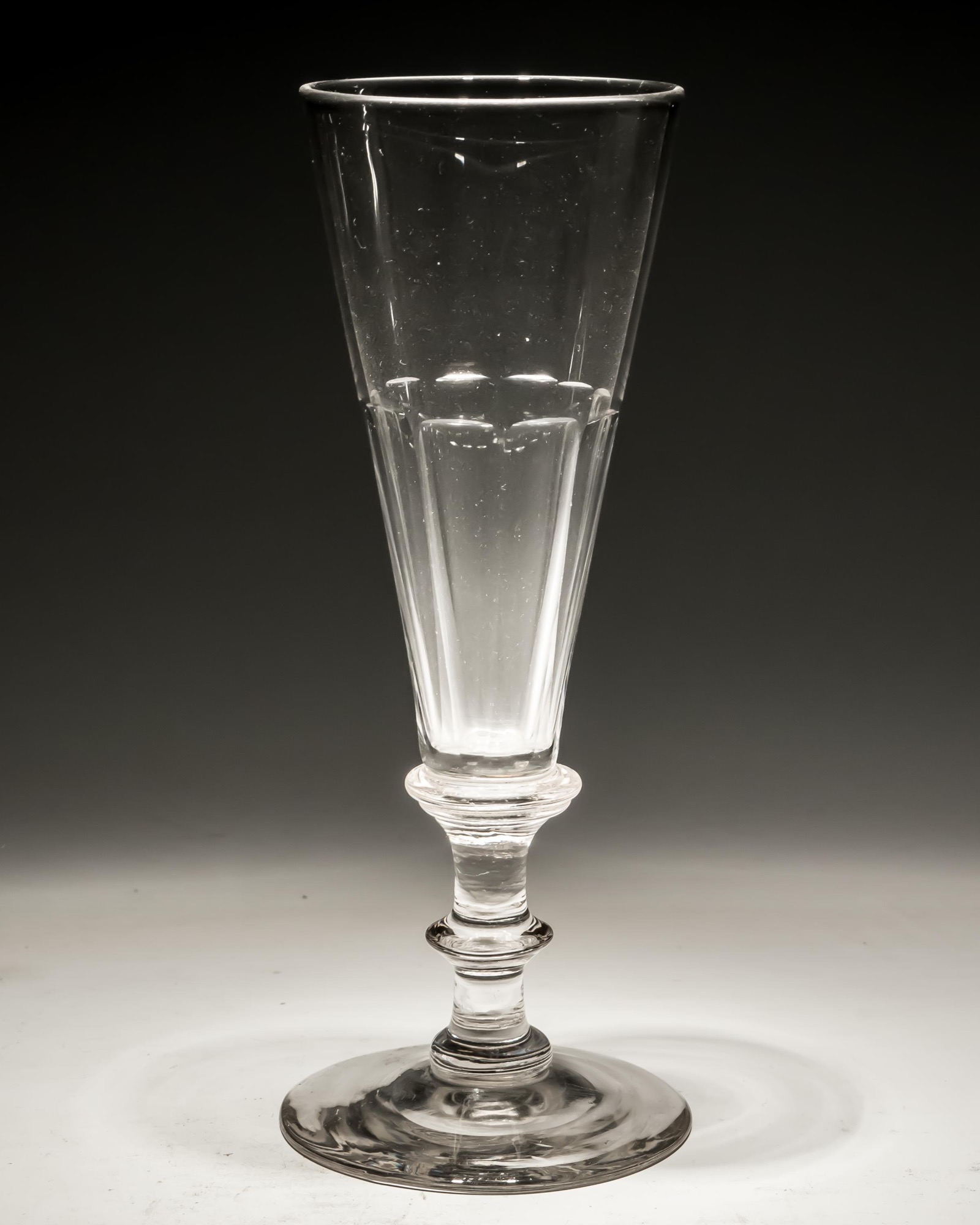 A SET OF FOUR SLICE CUT CHAMPAGNE FLUTES