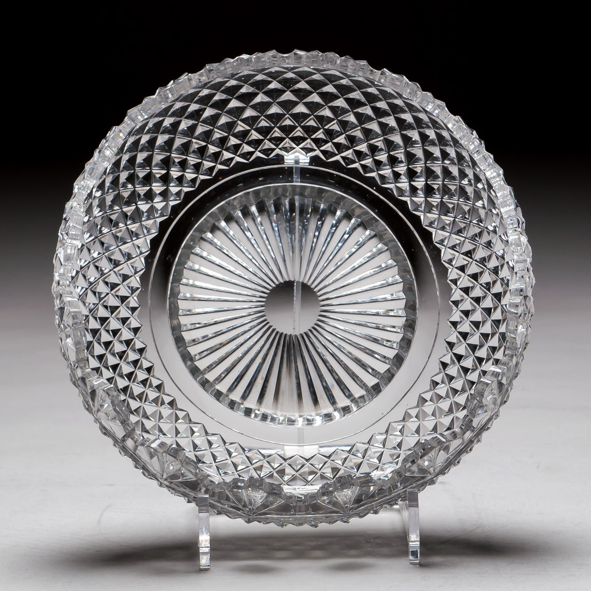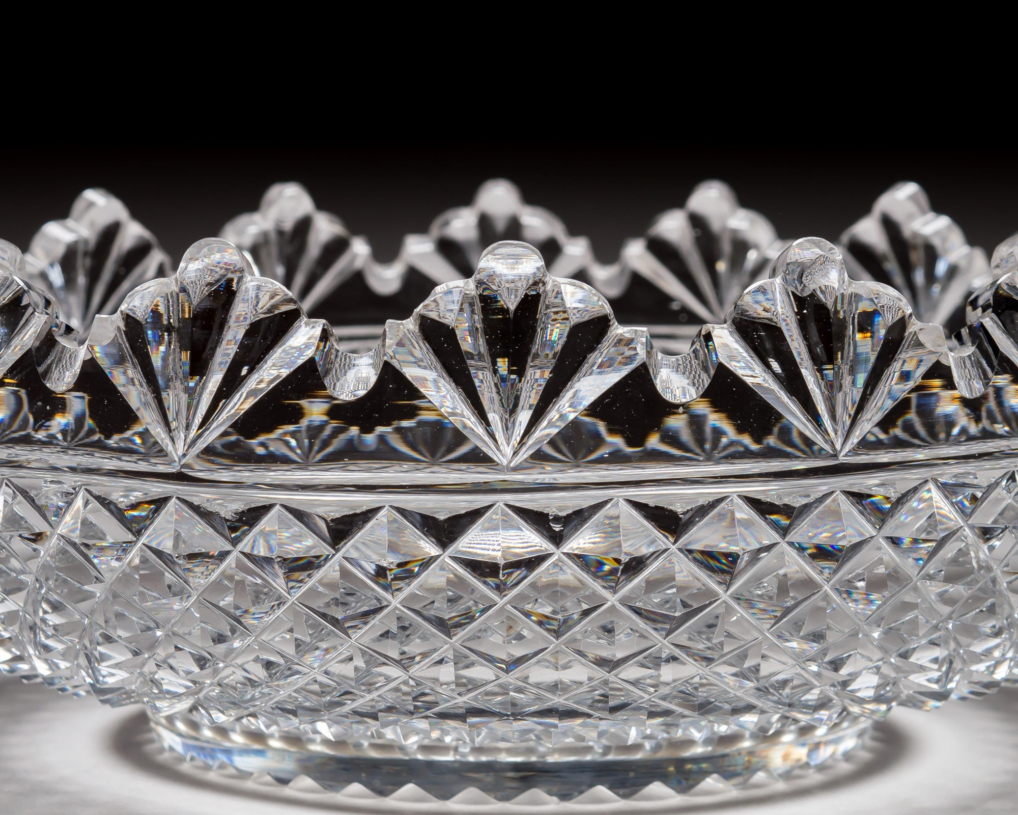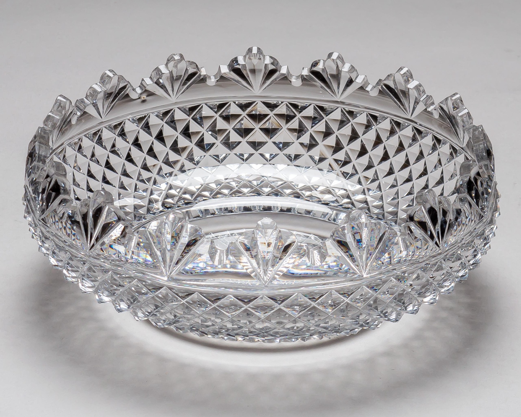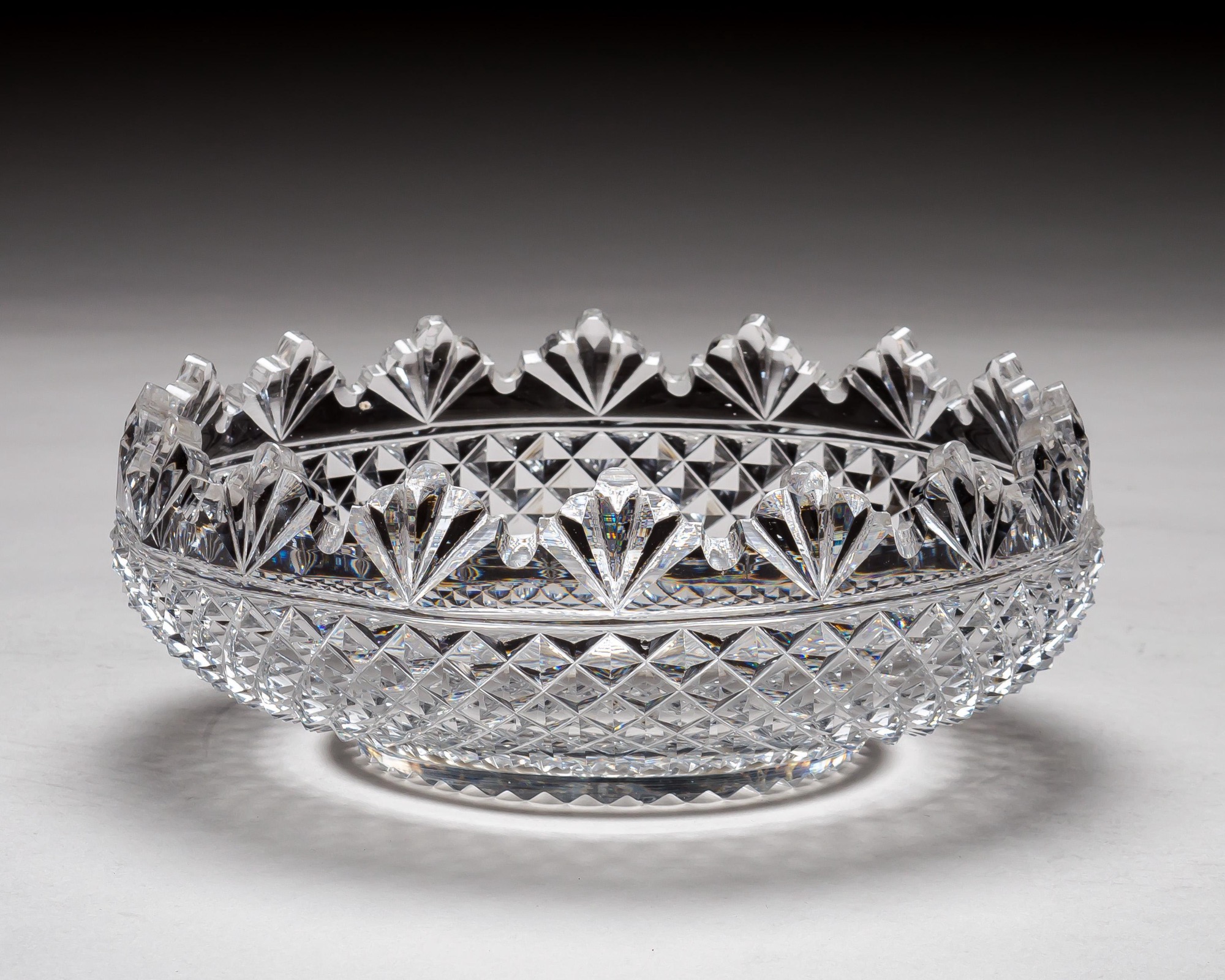 A Regency bowl with van-dyke cut rim, timeless diamond cut body and elevated on a shallow, radial cut foot.